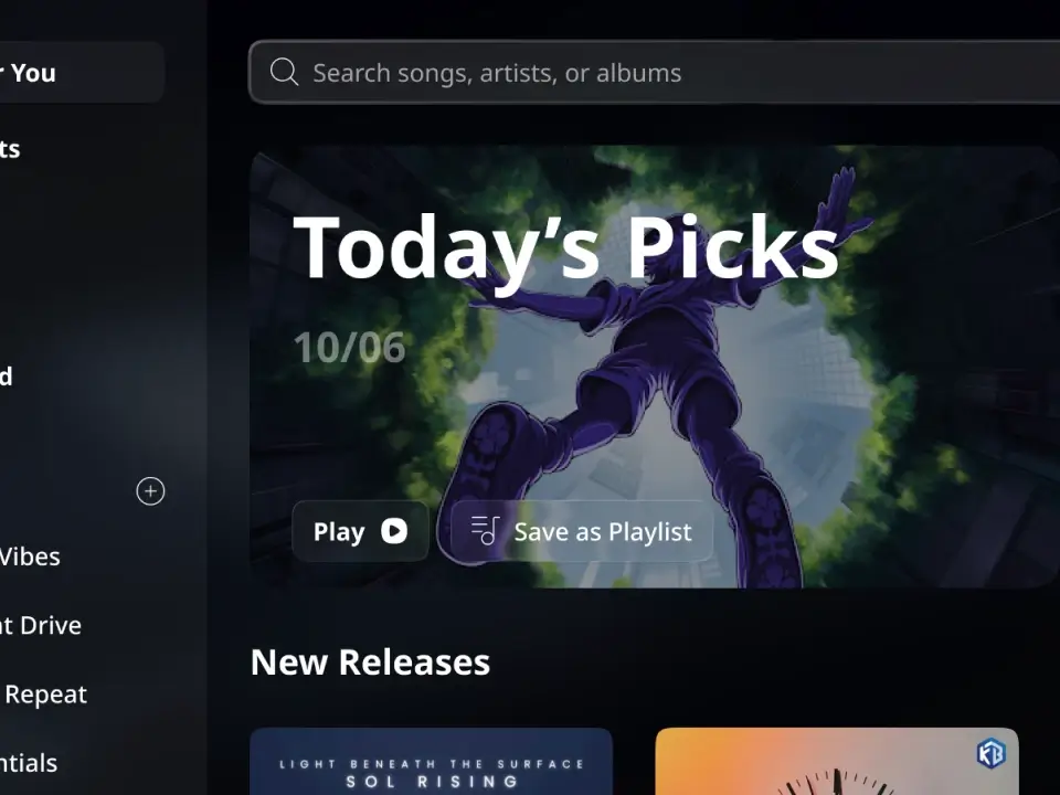 为在线音乐打造的桌面端应用。我们在设计中注重播放体验的直观与简洁,优化了播放列表、推荐模块和播放控制的交互方式,使用户能够更轻松地沉浸在音乐中。我们在视觉设计与交互逻辑上的整合能力,也为类似的音乐或娱乐平台提供了参考方案。